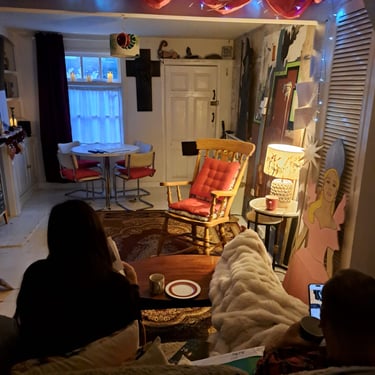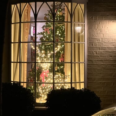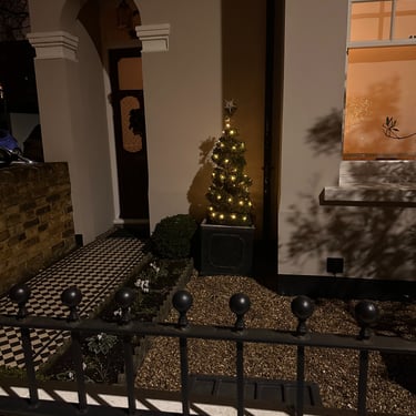 The houses maintain classical proportions. Arches, bay windows, checkerboard entrance tiles, restrained landscaping. During Christmas, illumination remains intimate. From the street, a lit tree behind curtains feels less like display and more like domestic ritual.