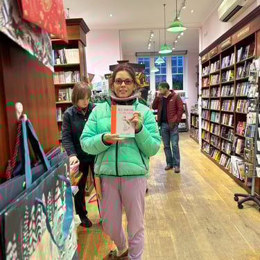 A livraria ali é diferente da famosa unidade de Marylebone. Não há claraboias altas nem luz zenital dramática. Em Hampstead, o espaço é mais íntimo. A luz entra pelas janelas voltadas para a rua, lateral, suave, quase tímida nos dias de inverno. Ela percorre as estantes de madeira escura e encontra as lombadas dos livros de maneira silenciosa.