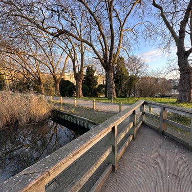E os cachorros. Londres e seus parques têm uma relação quase afetiva com eles. Em Hampstead, eles correm soltos, atravessam caminhos, mergulham nos lagos. Há algo muito orgânico nessa convivência. A paisagem é usada, vivida, atravessada.